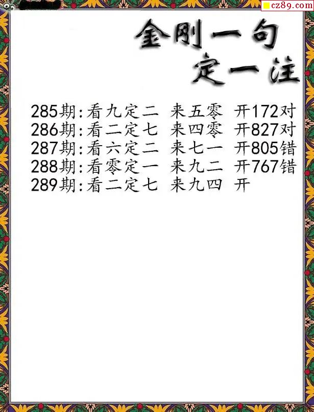 > 福彩3D2025289期福彩金刚一句定三码字图谜