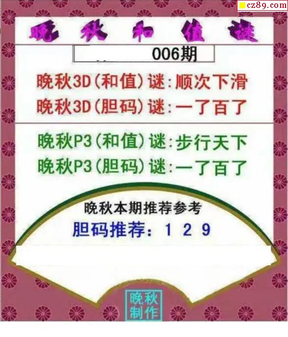 > 晚秋和值谜2026006期3d图谜
