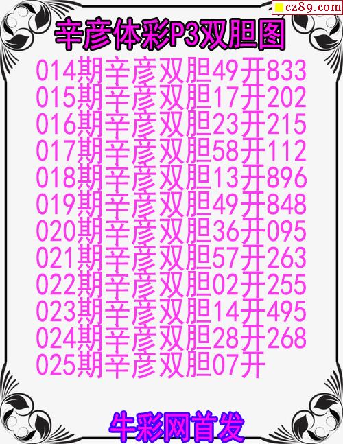 > 26年025期辛彦体彩P3双胆图